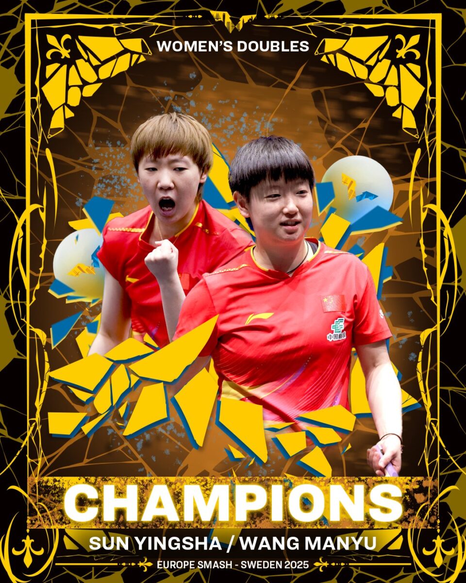 世界卓球連盟(WTT)のスウェーデン・グランドスラム大会で、世界ランキング1位の孫颖莎(スン・インシャ)が2位の王曼昱(ワン・マンユー)を4-2で破り、女子シングルスのタイトルを獲得しました。
