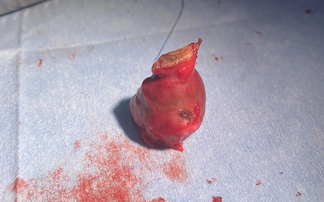 切開して袋を取り出す段階で先生が「んっ!んっ!」と力を込めて取り出そうとするのですが、